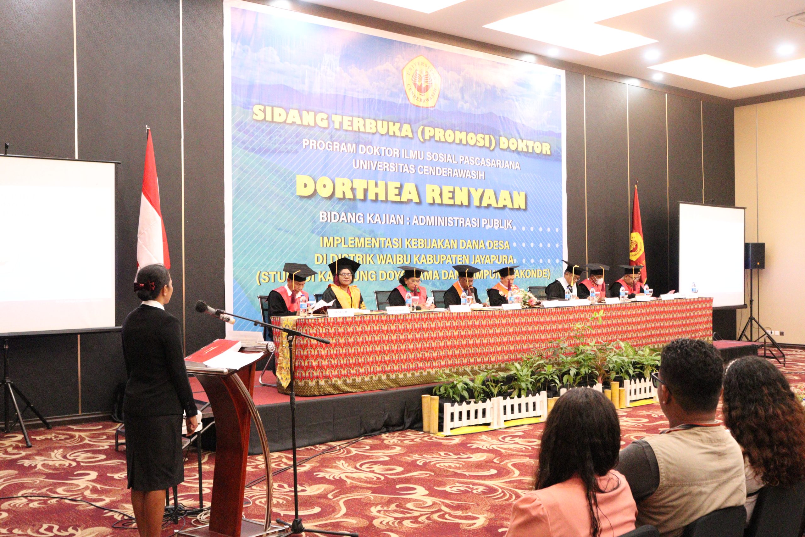 Jayapura, 7 Oktober 2024. Bertempat di Ballroom Hotel Horison Padang Bulan Dortea Renyaan raih gelar Doktor dalam bidang kajian utama Administrasi Publik