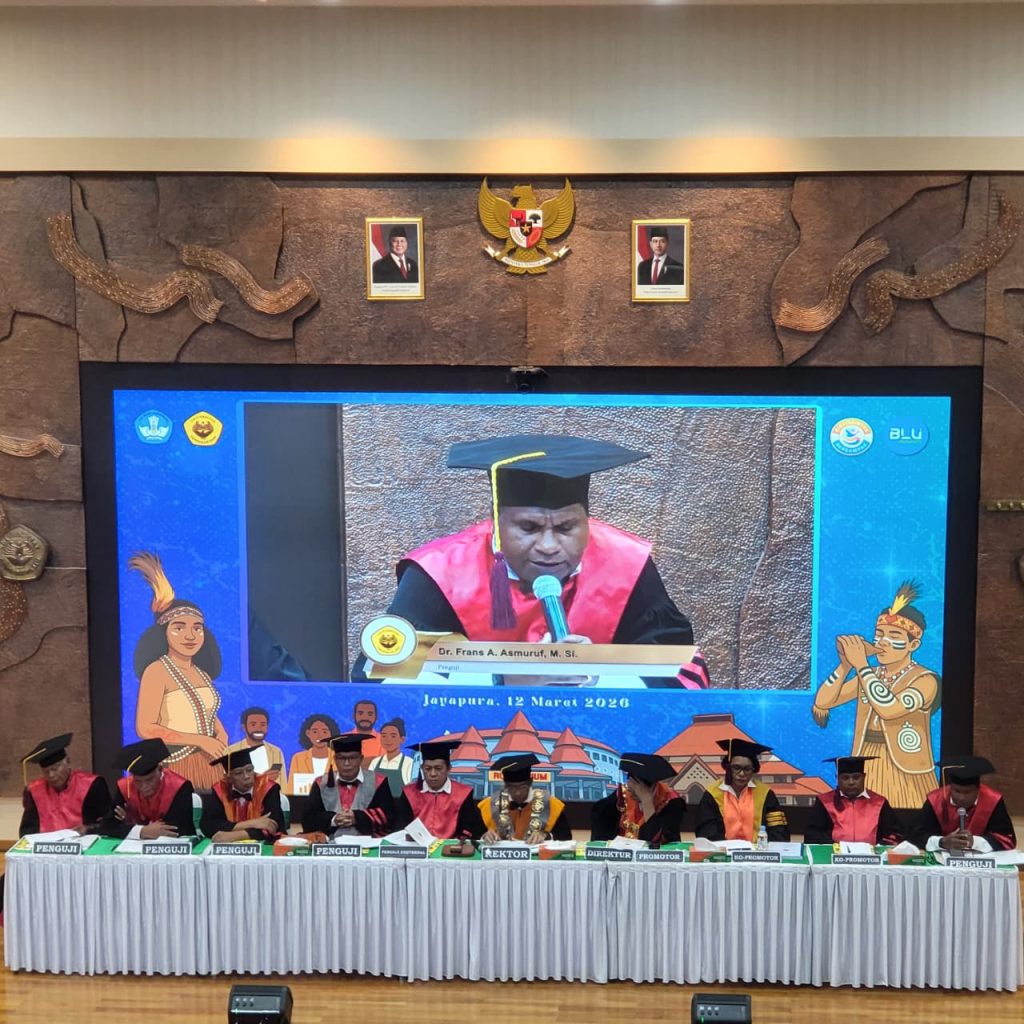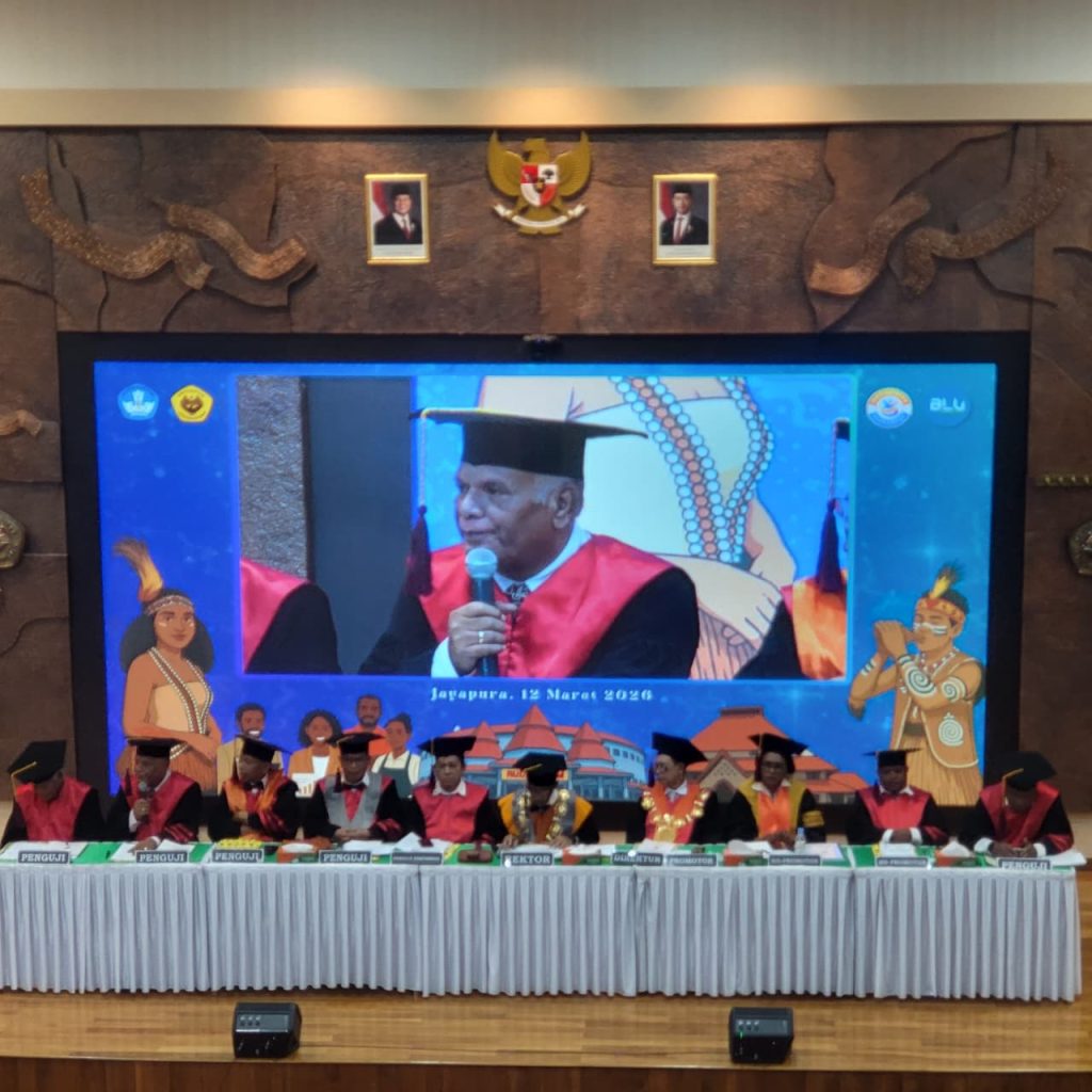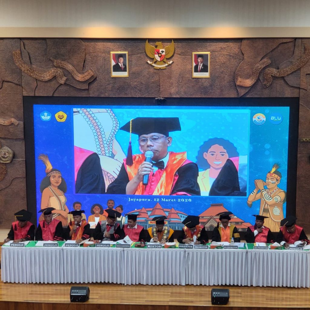 Jayapura, 12 Maret 2026-Mahasiswa Program Doktor Universitas Cenderawasih, Aryoko Rumaropen, melaksanakan kegiatan promosi doktor dengan memaparkan disertasi berjudul “Rekonstruksi Model Optimalisasi Tata Kelola Beasiswa Afirmasi Provinsi Papua.” Kegiatan akademik tersebut berlangsung dalam sidang promosi doktor yang dipimpin langsung oleh Rektor Universitas Cenderawasih Prof. Dr. Oscar Oswald O. Wambrauw, SE., M. Sc., Agr